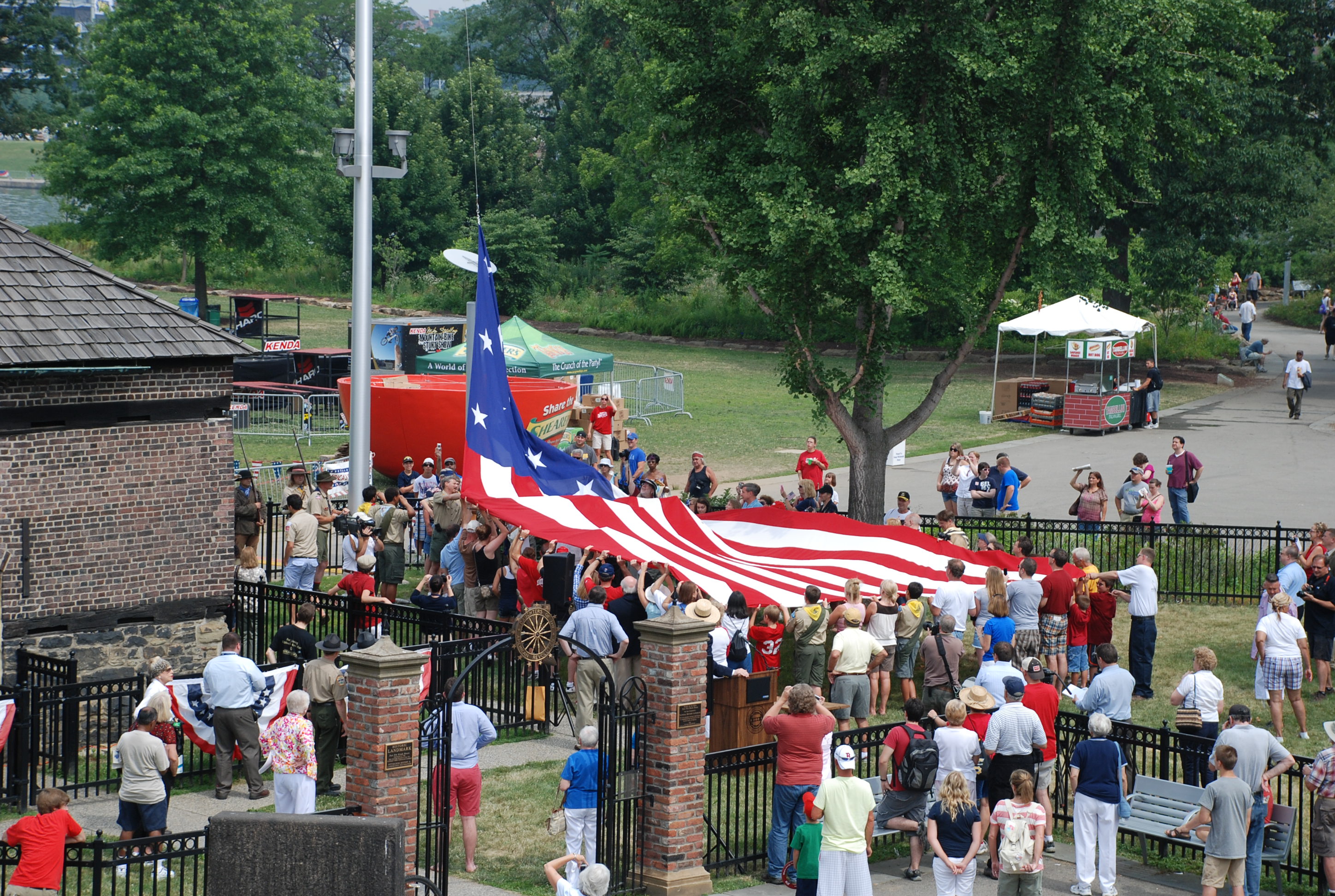 At 1 p.m., colonial reenactors, local scouts, and veterans will help raise a 36-foot American flag and kick off the Fourth of July holiday in the city of Pittsburgh. The ceremony will commence in the Fort Pitt Block House yard thanks to an ongoing partnership with the Pittsburgh Chapter of the National Society Daughters of the American Revolution, owners of the Fort Pitt Block House – the oldest building in the region. Visitors can watch museum staff symbolically lower a British ensign and help raise a 36-foot, 13-star Garrison flag, one of several early patterns that may have flown over Fort Pitt during the American Revolution. The ceremony will conclude with the singing of the National Anthem.