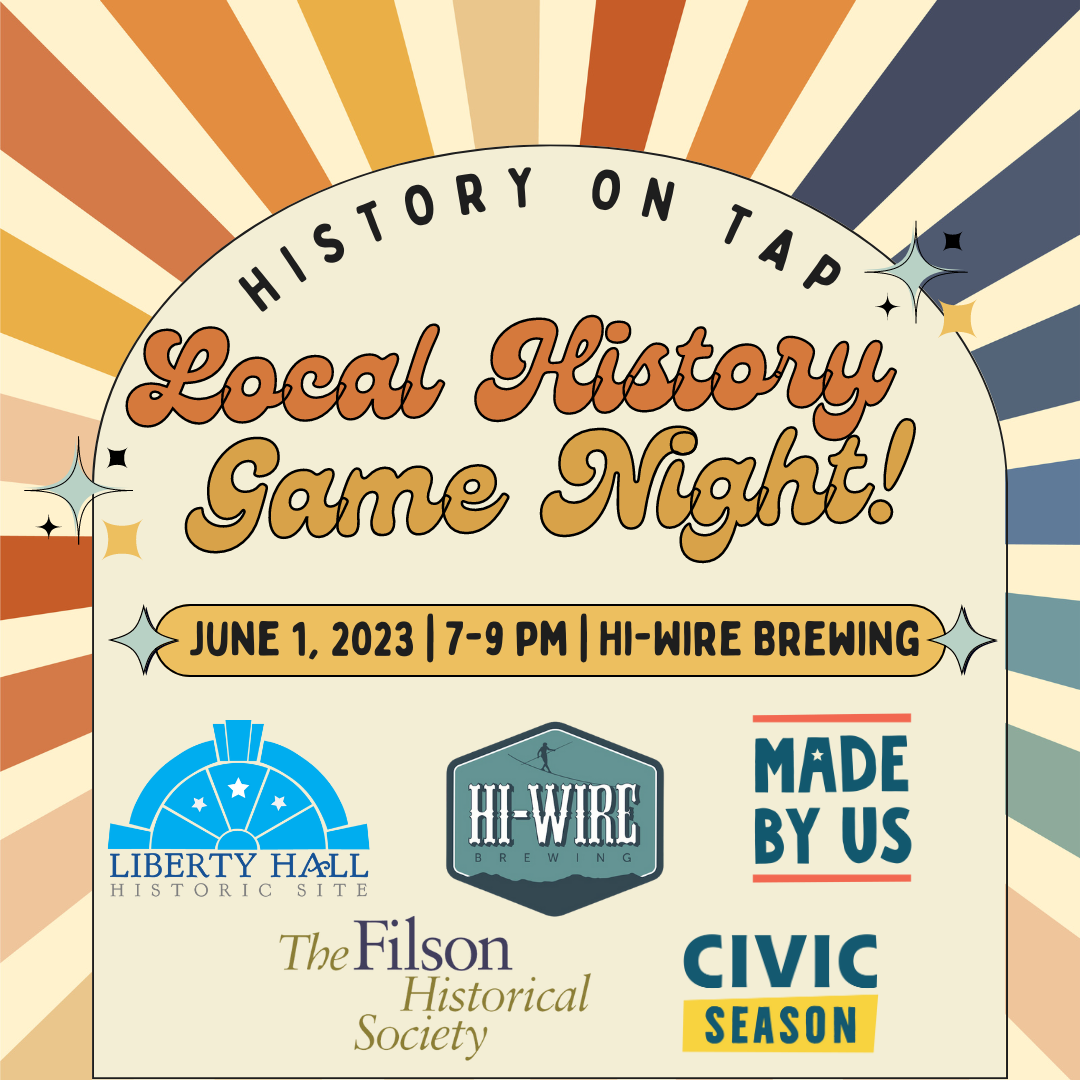 Come celebrate Kentucky Statehood Day and the kick off of Civic Season with your local history organizations, the Filson Historical Society and Liberty Hall Historic Site! The Commonwealth of Kentucky was admitted to the Union as the 15th state on June 1, 1792. Grab a pint at Hi-Wire or a slice of pizza from Goodfellas Pizzeria and settle in for some local history-centric games. Prizes awarded!